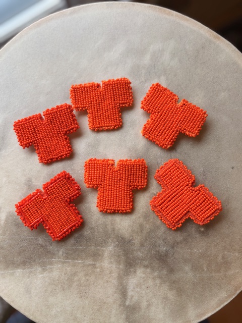 These beautiful handcrafted orange shirt brooches are created by indigenous artist from treaty 6 & 7. A statement piece to spread awareness and to honor native children who attended residential school. Yourself, your family, friends and collogues can come together and support reconciliation.