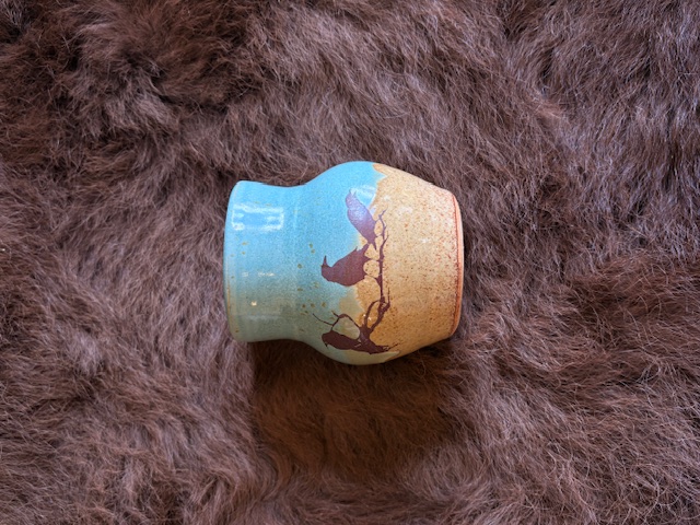 Aprox 4.5 inches tall, these ceramic vases features 4 Buffalos on the prairies and the other with a family of ravens.